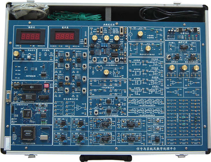 信號與系統及數字信號處理平臺,是本公司開(kāi)發(fā)人員采用先進(jìn)的技術(shù)手段專(zhuān)門(mén)為《信號與系統》("九五"國家級重點(diǎn)教材、清華大學(xué)鄭君理等編制)課程而設計的,該實(shí)驗儀提供了信號的頻域、時(shí)域分析的實(shí)驗手段,增加了數字信號處理功能。利用該實(shí)驗箱可進(jìn)行階躍響應與沖激響應的時(shí)域分析;連續時(shí)間系統的模擬;抽樣定理與信號恢復的分析與研究;一階、二階電路的暫態(tài)響應;二階網(wǎng)絡(luò )狀態(tài)軌跡顯示、借助于DSP技術(shù)實(shí)現信號頻譜的分析與研究、信號的分解與合成的分析與實(shí)驗;各種模擬、數字濾波器的設計與實(shí)現等內容的學(xué)習與實(shí)驗。