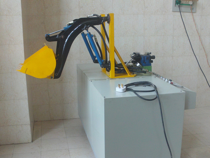 3、裝載機械按實(shí)物比例縮小的全金屬結構,實(shí)驗時(shí)啟動(dòng)液壓系統根據實(shí)驗要求模以操作機械進(jìn)行工作。